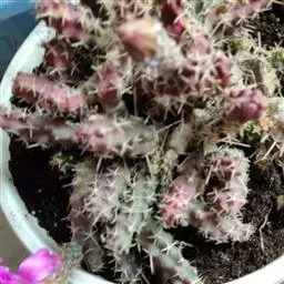 姬珊瑚为仙人掌属植物。姬珊瑚又叫仙人条,是一种灌木状的多肉盆栽植物,属于双子叶植物,浑身长满尖刺,…