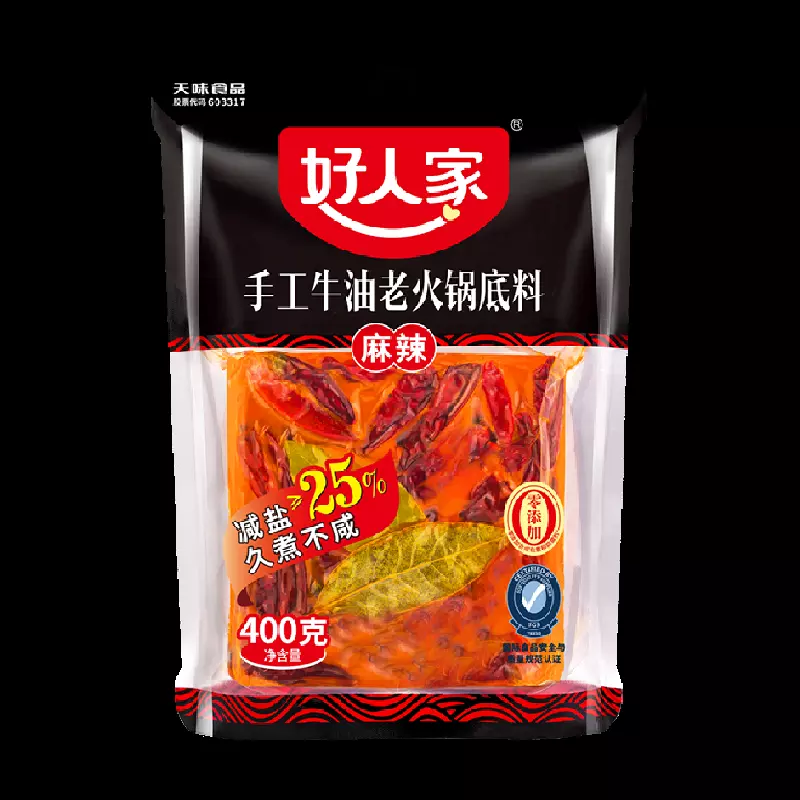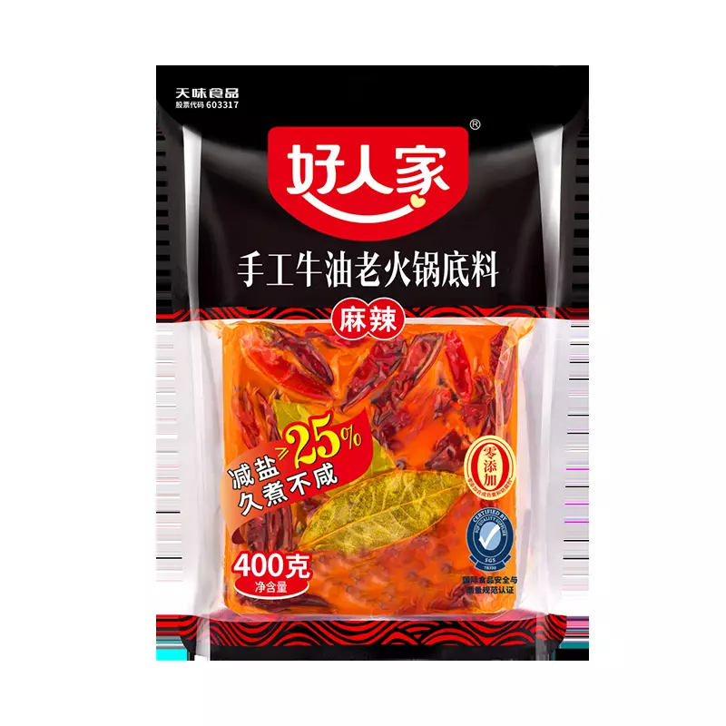 好人家是一个川菜风味系列复合调料产品,是天味食品针对四川特色菜肴和特色菜品,采用物理或生物技术研制开发成的方便型复合调味料。十几年来,产品系列不断丰富,产品口味也持续增加,产品具有浓郁的川味特色,口味清鲜醇浓并重,麻辣兼具。