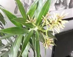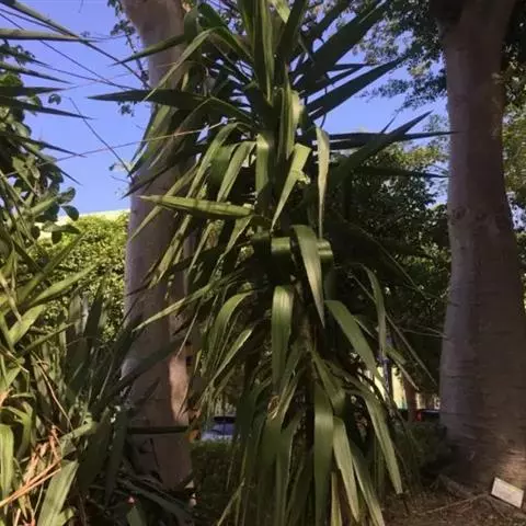 巴西木为常绿乔木,高可达6m以上。叶簇生于茎顶,长40~90cm、宽6~10cm,宽线性,尖稍钝,弯曲成弓形;叶缘呈波状起伏,鲜绿色,平行脉,有光泽,近无叶柄。圆锥花序,花小,簇生,黄绿色,傍晚时分散发芳香。果实橘黄色。