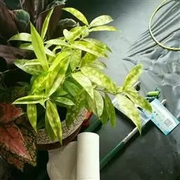 平时养护,每30天左右用稀释10倍的米醋浇施1次,避免大水冲洗,营养液可在6~12个月更换1次。水培第1年生长最为旺盛,第2年随着养分的逐步消耗,原来坚实的茎段逐渐变软,树皮浮松,叶片由绿变黄,如果能及时栽人土中,则可继续生长观赏。