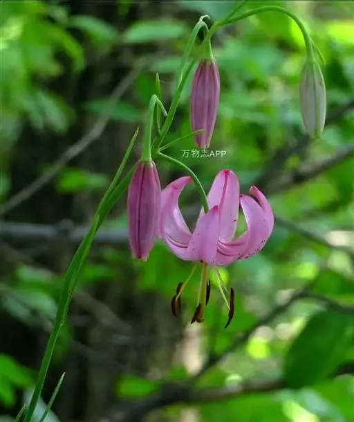 观赏. 垂花百合株形独特,婀娜多姿,花朵粉红,清新秀美,是园林绿化佳品. 可用于花坛、花境绿化,亦可用于草坪中一穴多株栽培,可以营造清雅脱俗的观赏意境.