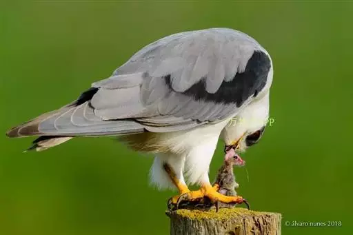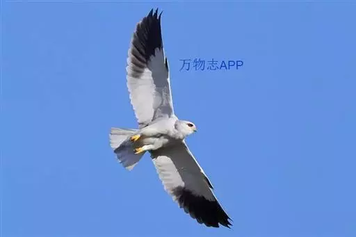黑翅鸢(学名:Elanus caeruleus):小型猛禽,体长约33厘米。上体蓝灰色,下体白色。眼先和眼周具黑斑,肩部亦有黑斑,飞翔时初级飞羽下面黑色,和白色的下体形成鲜明对照。尾较短,平尾,中间稍凹,呈浅叉状。脚黄色,嘴黑色。常在空中翱翔,间或进行滑翔。