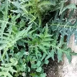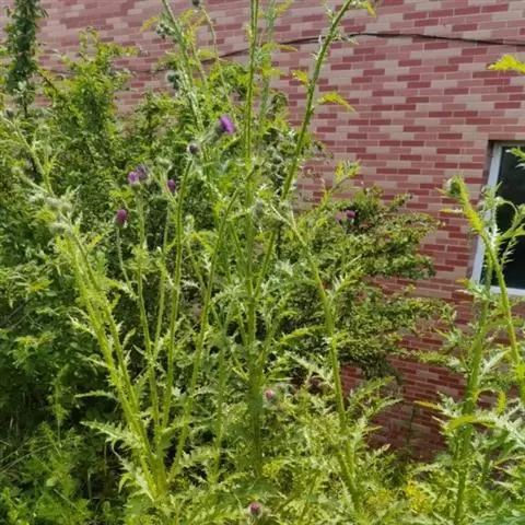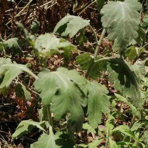 茎单生,坚硬,具槽沟,直立,高达1米,基部被疏生长柔毛,后变无毛,直径约5毫米;中部叶疏生;下部茎叶具长柄;叶片干时近膜质,全形圆形,直径30--40厘米,基部宽盾形(达2厘米),掌状深裂;裂片长圆状披针形,下部的裂片有时不分裂,其余的裂片浅裂,或线状披针形,宽2—3厘米,顶端尖,稀二浅裂边缘有疏锯齿,具小尖头,主脉掌状,近平行,上面绿色,无毛,下面灰绿色,被短柔毛,后变无毛;叶脉凸起,具明显的网脉;叶柄长3—8厘米,基部半抱茎;上部茎叶掌状深裂或2浅裂,叶柄短,最上部的叶苞片状,线状披针形,长达5厘米,具疏锯齿。头状花序盘状,多数在茎端排成复伞房状;分枝开展,长2—3,稀达8厘米,被疏短柔毛;花序梗长达6毫米,具3--4个线状披针小苞片形。总苞圆柱形;总苞片5,长圆状披针形,长约10毫米,宽2—3.5毫米,顶端钝或尖,边缘多少膜质,背面具细条纹,顶端疏长柔毛。小花约10,全部管状,结实;花冠长9—10毫米;檐部钟状,长约7毫米;裂片披针形,长2毫米,顶端有微毛;花药伸出花冠,长5毫米,基部箭形;花柱分枝外弯,顶端被笔状微毛。瘦果圆柱形,长4—5毫米,无毛,具肋;冠毛白色或变红色。主要价值花期2—8月。