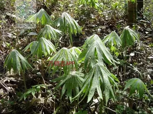 本种叶较大,近膜质,基部宽盾形;裂片较宽和花序分枝开展与兔儿伞S.Aconiti—folia(Bge.)Maxxm.相区别。