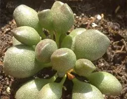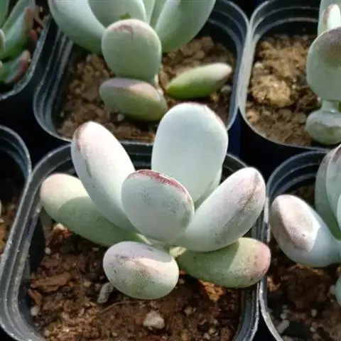 乒乓福娘,植株叶片退化成扁卵状,植株为直立的肉质灌木,能够长高。叶片对生,扁卵型至圆卵形,叶片顶端…