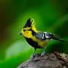 黄颊山雀是雀形目山雀科山雀属鸟类。雄鸟额、头顶和羽冠为具有光泽的黑色;额基、眼先、眉纹、脸颊和耳羽等头颈侧为鲜艳的明黄色;贯眼纹黑色;后颈亦具一黄斑;上体灰黄绿色,羽缘黑色;尾羽黑色具蓝灰色羽缘,基部白色;下体颏、喉至上胸为富有金属光泽的黑色;胸下有一黑色宽中央纵纹,一直延伸至肛周;其余下体白色;胸侧和两胁染黄色或蓝灰色;虹膜暗褐色;喙黑色;脚铅蓝灰色至铅黑色。雌鸟似雄鸟,但上体光泽较弱,胸腹部黑色纵带不明显。黄颊山雀分布于亚洲东南部地区,在中国分布于华中、华南和西南等地。栖息于中低山常绿阔叶林、针叶林和混交林中,也见于山麓疏林灌丛草坡或茶园、果园等地。常成对或小群活动,也和大山雀等其他小型鸟类混群,活跃地在乔灌木枝叶间飞翔跳跃。主食鳞翅目和鞘翅目等昆虫,兼食植物种实。繁殖期在4-6月,营巢于树洞、岩隙或墙缝中。窝卵数为3-7枚,卵灰白色且有红褐斑,雏鸟晚成。黄颊山雀被列入中国林业局200