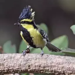 黄颊山雀(学名:Parus spilonotus)小型鸟类,体长12~14厘米。头顶和羽冠黑色,前额、眼先、头侧和枕鲜黄色,眼后有一黑纹。上背黄绿色、羽缘黑色,下背绿灰色(西藏亚种) ,或上背黑色而具蓝灰色轴纹,下背蓝灰色 (华南亚种) 。颏、喉、胸黑色并沿腹中部延伸至尾下覆羽,形成一条宽阔的黑色纵带,纵带两侧为黄绿色 (西藏亚种) 或蓝灰色 (华南亚种)。