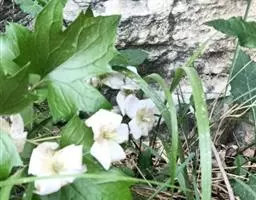 毛茛铁线莲 多年生 直立草本或草质藤本,长0.5-2米。根短而粗壮,木质,表面棕黑色,内面淡黄色。茎基部常四棱形,上部六棱形,有深纵沟,微被柔毛或近于无毛。基生叶有长柄,长7-10厘米,有3-5小叶,茎生叶柄短,长仅3-7厘米,常为三出复叶;小叶片薄纸质或亚革质,卵圆形至近于圆形,长4-6厘米,宽2-4厘米,顶端钝圆或钝尖,基部宽楔形,边缘有不规则的粗锯齿,常3裂,两面被疏柔毛,叶脉在上面不显,在下面凸起;小叶柄短,长仅1-2厘米。