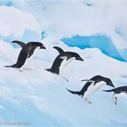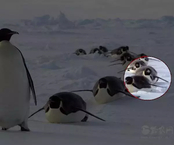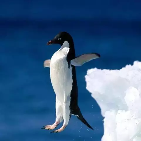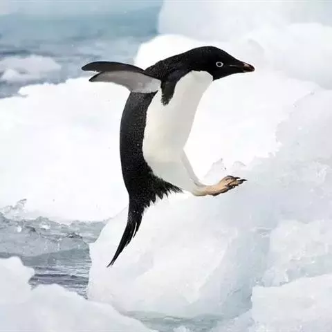 阿德利企鹅春天从大洋中返回繁殖地,越过积冰到达大陆,在行军中遇到冰层阻挡,能垂直高跳2米,跳上浮冰继续前进。