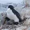 阿德利企鹅 阿德利企鹅的繁殖季节在春季,此时,冰雪开始消融,传统繁殖地与海边的路程大大缩短了,繁殖期中可以及时从大海中获得食物。为使娇嫩的蛋保持在融雪之上,阿德利企鹅必须用石子筑起一个合适的巢供孵卵时站立。阿德利企鹅喜欢群居,一块营巢地可能多达10万只企鹅,石子不能满足阿德利企鹅筑巢需求,雄企鹅常偷取其他企鹅筑巢石子,送到雌企鹅脚下。