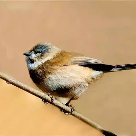 长尾朱雀:体长18厘米,体重16-26克。雄鸟额、颏和眼后为暗红色,…