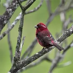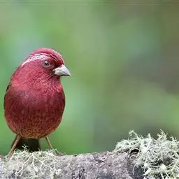 大朱雀(学名:Carpodacus rubicilla):体重33-52克;体长167-205毫米;体形较大;为不常见留鸟。体羽深红色;羽中央具白色或带粉白色斑点,颊深红色;雌鸟体羽淡灰色,稍暗的颊具有阴暗或带褐色斑纹;下背和腰无斑纹。