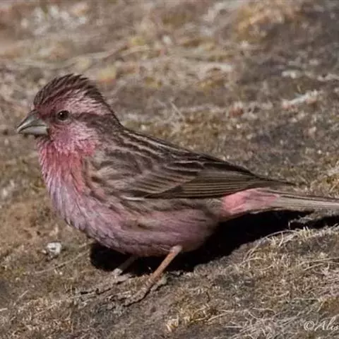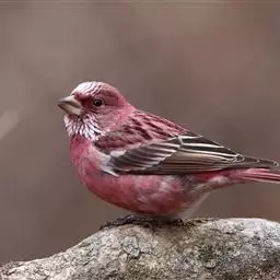 藏朱雀:全长约17-18厘米。雄鸟头部深红色具光辉,喉部暗红色具白色点斑;背部灰白色,各羽具玫瑰红…