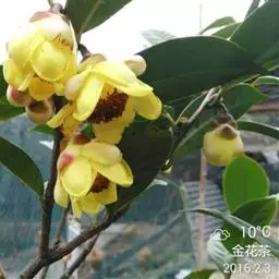 金花茶 Sealy)山茶科山茶属木本植物。幼枝浅褐色,当年生小枝略带紫色棕色,无毛;叶革质,…