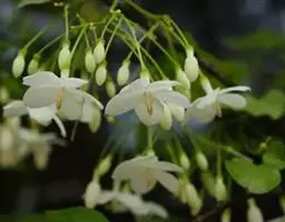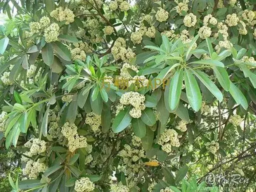 盆架树(Winchia calophylla A. DC. ):常绿乔木,高达30米,直径达1.2米;枝轮生,树皮淡黄色至灰黄色,具纵裂条纹,内皮黄白色;小枝绿色,嫩时稜柱形,具纵沟,老时成圆筒形,落叶痕明显。叶3-4片轮生,长圆状椭圆形,顶端渐尖呈尾状或急尖,叶面亮绿色,叶背浅绿色稍带灰白色,两面无毛。花多朵集成顶生聚伞花序,花冠高脚碟状,花冠筒圆筒形,裂片广椭圆形,白色,长3-6毫米,宽约2.5毫米,外面被微毛,内面被柔毛。种子长椭圆形,扁平,两端被棕黄色的缘毛。花期4-7月,果期8-12月。