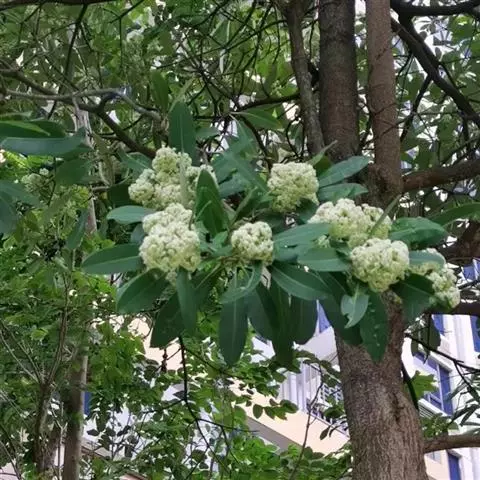 每天经过四川南路,也特别留意了这些花开正艳的盆架子树,的确“花香”太浓,有异味。 盆架子又称:岭刀柄、山苦常、鸭脚常,面盆架子,白叶糖胶。产地海南岛和云南,印度,缅甸,印度尼西亚。每年9至12月,盆架子树会开出大量花朵,这些花朵带有一股特殊的腥臭味。“令人觉得昏眩、胸闷、有点反胃。”一位对盆架子树反映“强烈”的市民称。