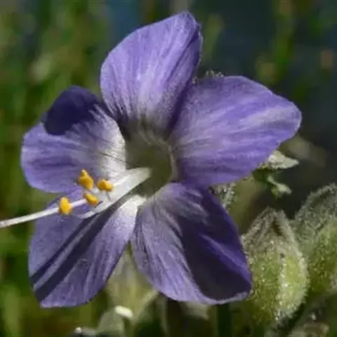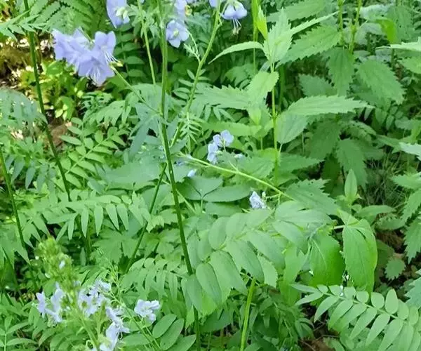 花荵是一种花荵科 、花荵属植物,多年生草本,根匍匐,圆柱状,多纤维状须根。茎直立,高0.5-1米,无毛或被疏柔毛。羽状复叶互生,茎下部叶长可达20多厘米,茎上部叶长7-14厘米,小叶互生,11-21片,长卵形至披针形,顶端锐尖或渐尖,基部近圆形,全缘,两面有疏柔毛或近无毛,无小叶柄;叶柄生下部者长,上部具短叶柄或无柄,与叶轴同被疏柔毛或近无毛。聚伞圆锥花序顶生或上部叶腋生,疏生多花;花梗连同总梗密生短的或疏长腺毛;花萼钟状,被短的或疏长腺毛,裂片长卵形、长圆形或卵状披针形,顶端锐尖或钝头,稀钝圆,与萼筒近相等长;花冠紫蓝色,钟状,裂片倒卵形,顶端圆或偶有渐狭或略尖,边缘有疏或密的缘毛或无缘毛;雄蕊着生于花冠筒基部之上,通常与花冠近等长,花药卵圆形,花丝基部簇生黄白色柔毛;子房球形,柱头稍伸出花冠之外。蒴果卵形。种子褐色,纺锤形,种皮具有膨胀性的粘液细胞,干后膜质似种子有翅。