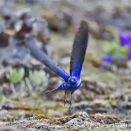 蓝大翅鸲是鹟科、大翅鸲属小型鸟类,体长19-21厘米。两翅尖长。雄鸟通体鲜紫蓝色具金属光泽。…
