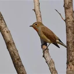 日本歌鸲:体型小似麻雀,但羽毛颜色较为美丽。嘴细长,嘴须不发达;翅短圆,上体草黄褐;雄鸟喉部橙棕色,…