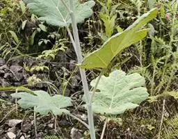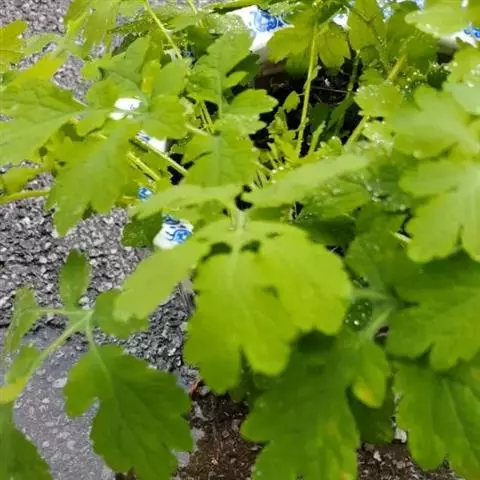 直立草本,高30-60厘米或更高。茎圆柱形,带紫红色。叶片轮廓三角形,长 (15-)20-30(-40)厘米,宽(10-)14-17(-20)厘米,二回三出全裂,第一回裂片具长柄,中裂片的柄较侧裂片的长,第二回裂片近无柄,2或3裂,小裂片通常全缘,表面绿色,背面具白粉,两面叶脉明显;叶柄长约10厘米。