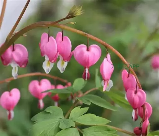 荷包牡丹,(拉丁学名:Dicentra spectabilis (L.) Lem.),为罂粟科、荷包牡丹属多年生草本植物,株高30~60cm。地上茎直立,圆柱形,带紫红色,根状茎肉质,小裂片通常全缘,表面绿色,背面具白粉,两面叶脉明显;叶柄长约10厘米,形似当归。