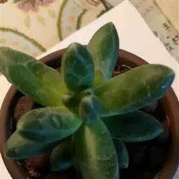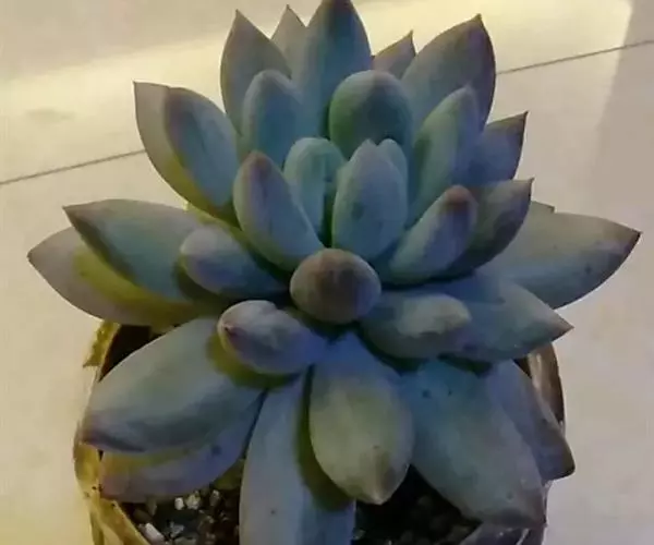 蓝黛莲是一种景天科厚叶草属植物。叶片呈略扁的圆柱形,排列成莲座状;颜色为灰绿色,…