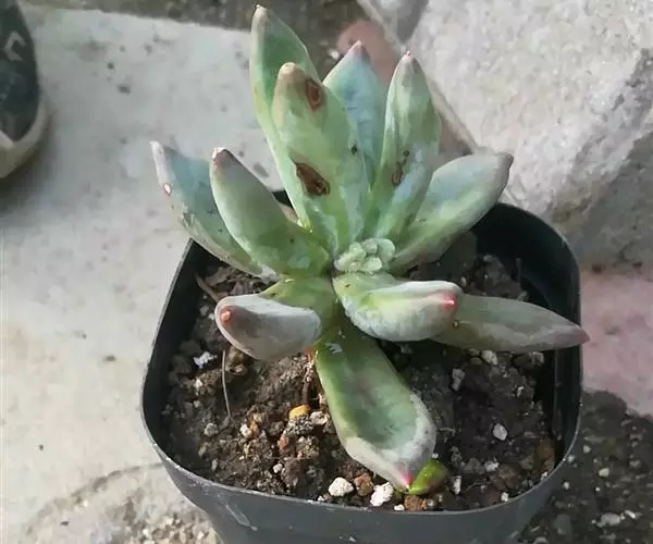 常见病害以植株黑腐为主(即植株部位变黑并腐烂,多见于根部),多发于夏季,通常是由于通风条件差和高湿高温的环境所致,但有时也可能由介壳虫导致。发现后需迅速与其他植物隔离,初期可将腐烂的部位彻底剪去,可在切口处涂抹少许杀菌剂(百菌清、多菌灵等),切口晾干后插入疏松的沙土中即可重新生根。若黑腐已经蔓延到植株生长点即可视为死亡,尽早丢弃以防传染。预防可于配土中混入少许百菌清、多菌灵等杀菌剂。