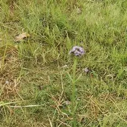 马鞭草(拉丁学名:Verbena officinalis L.),多年生直立草本植物,高可达120厘米,基部木质化,单叶对生,卵形至长卵形,两面被硬毛,下面脉上的毛尤密。顶生或腋生的穗状花序,花蓝紫色,无柄,花萼膜质,筒状,花冠微呈二唇形,花丝极短;子房无毛,果包藏于萼内,小坚果。花果期6-10月。