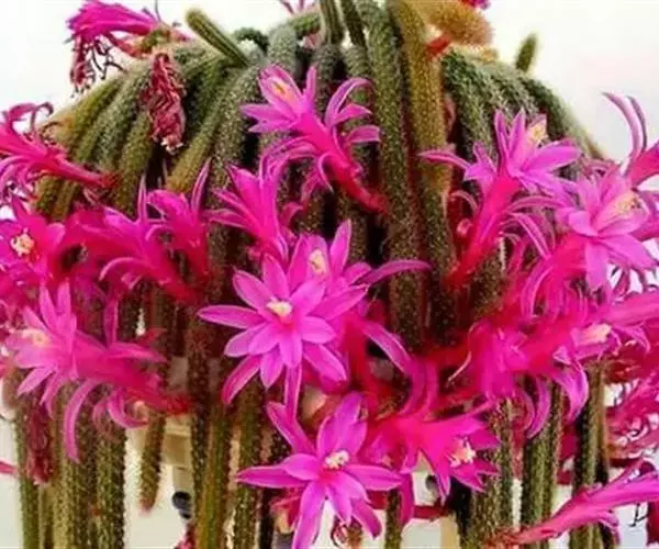 鼠尾掌,为仙人掌科鼠尾掌属多浆植物。变态茎细长、匍匐,通 常扭状下垂,在原产地可长达2米,一般栽培20—30厘米,具气生根。幼茎绿色,以后变灰,径1.5—2厘米,无叶,具10—14棱,隔0.5厘米着生15—20枚短刺丛,初生略带红色,以后变至黄褐色,因其外形酷似老鼠尾巴而得名。花期4—5月,花漏斗状,粉红色,长约8厘米,径长7厘米,花被片急尖,昼开夜闭,可持续一周。浆果球形,红色,有刺毛,种子小,红褐色。鼠尾掌茎细扭垂,颜色浓绿,短刺丛生,排列整齐,花色鲜艳而优美,是室内优良观赏植物。用金属丝将花盆悬挂檐下,冬季陈列于窗前,观赏效果极佳。
