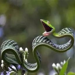 绿瘦蛇是游蛇科,瘦蛇属轻毒性后沟牙毒蛇。体型极细而长,长可达1.5米。头较窄长,…