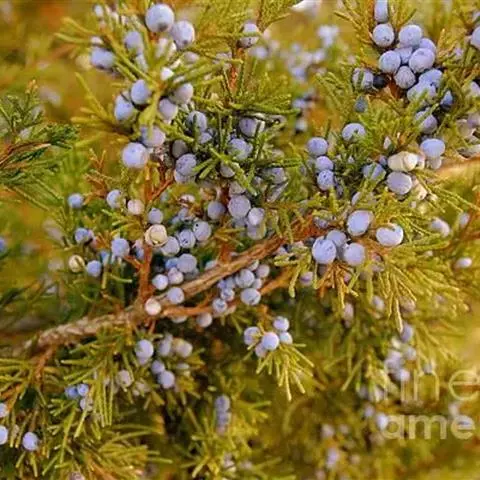 球果近球形或宽卵圆形,长7-10毫米,径6-9毫米,两年成熟,熟时淡红褐色,被白粉或白粉脱落,顶端有3条辐射状的皱纹及3个钝头,间或顶部微开裂;种子3粒,稀1粒,半月圆形,具3-4棱脊,顶端尖,近基部有3-4个树脂槽。
