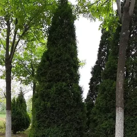 乔木,高达12米;树皮褐色,纵裂成长条薄片脱落;枝条斜展或直展,树冠塔形或圆柱形;小枝下垂,三棱形。
