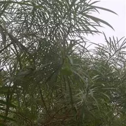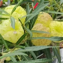 唐棉(Asclepias fruticosa L.),株形直立,全株具白色乳汁;叶:线形似柳叶,色浓绿,背面淡绿色,对生;花:繖形花序,腋生,乳白色下垂状,花期秋至隔年春季。