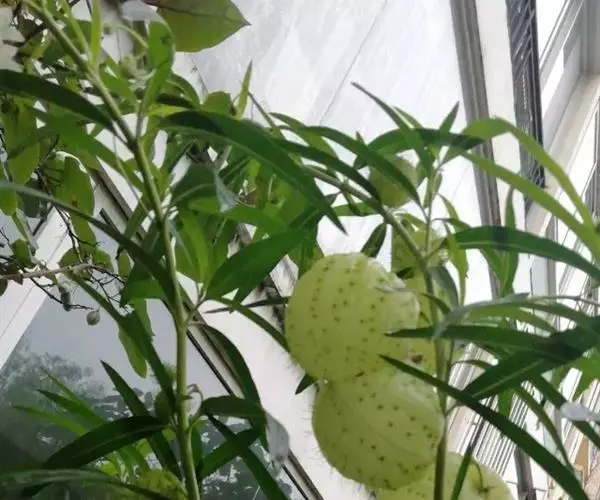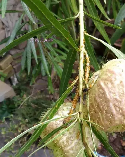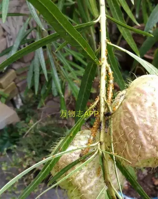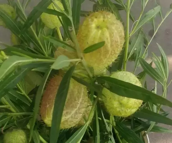 萝藦科宿根草本直立灌木,株高 80~150 公分,花期四月至翌年二月,在台湾中部山区及阿里山等地都可以看到它的踪迹。嫩枝绿色,老枝灰白色,细长直立。叶对生,线形细长;花白色,垂悬的繖形花序顶生或腋生,约十数朵小花;果实如膨胀的汽球,中空没有果肉,表面有粗毛,成熟后后开裂,种子具白色绒毛可飞散。