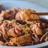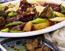 小鸡炖蘑菇是一道东北炖菜。通常是用干蘑菇、鸡肉和粉条一同炖制而成。榛蘑可以衬托出鸡肉的鲜香,粉条滑…