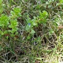 直立婆婆纳(学名:Veronica arvensis L.)玄参科婆婆纳属植物,小草本,茎直立或上升,不分枝或铺散分枝,高5-30厘米,有两列多细胞白色长柔毛总,状花序长而多花,长可达20厘米,花梗极短,萼长3-4毫米,裂片条状椭圆形,蒴果倒心形,强烈侧扁,种子矩圆形,长近1毫米。