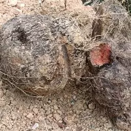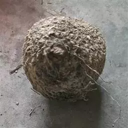 根圆柱形,稍扭曲,直径0.6-1.5cm。表面浅棕色,有纵向纹理和支根痕,弯曲处有横裂纹。质稍硬,断面灰黄色。气微,味苦。叶破碎,完整的叶阔心形,长6-18cm,先端渐尖,基部浅心形,全缘。表面黄绿色,下表面被毛茸,掌状脉5-7条较明显。质脆。气微,味苦。