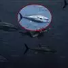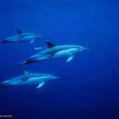 真海豚,身体细而流线型。体色十分复杂而独特,通常十字交叉型,黄褐色在前灰色在后,背面黑色向下延伸,…