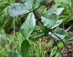 叶片卵状披针形或长椭圆形,长8-15(-20)厘米,宽2-6(-8)厘米,顶端渐尖,基部圆形或宽楔形,叶缘具刺芒状锯齿,叶背密被灰白色星状绒毛,侧脉每边13-18条,直达齿端;叶柄长1-3(-5)厘米,无毛。