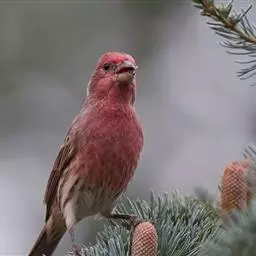 藏朱雀:全长约17-18厘米。雄鸟头部深红色具光辉,喉部暗红色具白色点斑;背部灰白色,各羽具玫瑰红…