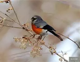 长尾朱雀:体长18厘米,体重16-26克。雄鸟额、颏和眼后为暗红色,…