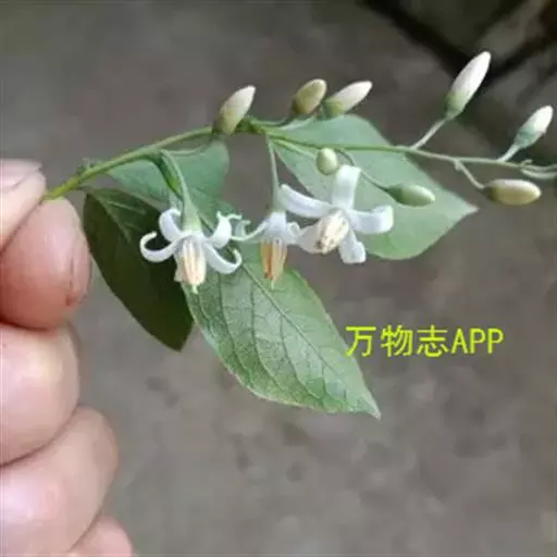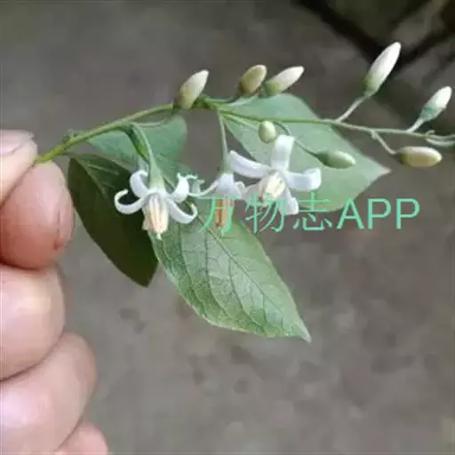 白花龙 灌木,高1-2米;嫩枝纤弱,具沟槽,扁圆形,密被星状长柔毛,或被毛渐脱落至完全无毛,老枝圆柱形,紫红色,直立或有时蜿蜒状。幼枝密被星状柔毛。或长圆状披针形,边缘有细锯齿。叶互生,纸质,有时侧枝最下两叶近对生而较大,椭圆形、倒卵形或长圆状披针形,长4-11厘米,宽3-3.5厘米,顶端急渐尖或渐尖,基部宽楔形或近圆形,边缘具细锯齿,当年生小枝的嫩叶两面均无毛至密被褐色或灰色星状柔毛,侧脉每边5-6条,第三级小脉网状,两面均明显隆起;叶柄长1-2毫米,密被黄褐色星状柔毛。总状花序顶生,有花3-5朵,下部常单花腋生,长3-4厘米;花序梗和花梗均密被灰黄色星状短柔毛;花白色,长1.2-1.5(-2)厘米;花梗长8-15厘米,花后常向下弯;小苞片钻形,长2-3毫米,生于花梗近基部,密被灰黄色星状短柔毛,易脱落;花萼杯状,膜质,高4-5(-8)毫米,宽3-4(-6)毫米,外面密被灰黄色星状绒毛和星状短柔毛,萼齿5,三角形或钻形,边缘有时具褐色腺点;花冠裂片膜质,披针形或长圆形,长5-15毫米,宽2.5-3毫米,外面密被白色星状短柔毛,边缘狭的内折或有时同一花中1-2裂片边缘一边内折,另一边平坦,在花蕾时作镊合状排列或呈稍内向覆瓦状排列,花冠管长3-4毫米,无毛;雄蕊长9-15毫米,花丝下部联合成管,上部分离,分离部分的下部密被长柔毛,上部无毛,花药长圆状披针形,长约5毫米;花柱较花冠长,被毛。果实倒卵形或近球形,长6-8毫米,直径5-7毫米,外面密被灰色星状短柔毛,果皮厚约0.5毫米,平滑。花期4-6月,果期8-10月。