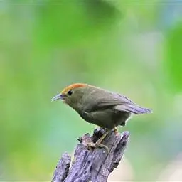 红头穗鹛是雀形目画眉科伪穗鹛属鸟类。成鸟额至头顶或至枕部为棕红色;额基和眼先淡灰黄色;眼圈隐隐泛黄白色;颊和耳羽灰黄色缀有橄榄褐色;其余上体连同翼和尾的表面为橄榄绿褐色;飞羽和尾羽暗褐色,外缘沾茶黄色;下体颏、喉和胸浅灰黄色,具细黑羽干纹;腹和尾下覆羽橄榄褐绿色;腋羽和翼下覆羽淡灰黄色;虹膜棕红色;上喙角褐色,下喙暗黄色;脚黄褐色。红头穗鹛分布于亚洲东南部地区;在中国分布于秦岭及以南的广大地区,包括长江流域、华南、华中和西南地区。栖息于山地森林中。常单独或成对活动,有时也结小群或与棕颈钩嘴鹛等其他鸟类混群,在林下灌丛间来回跳跃穿梭。主食鞘翅目、鳞翅目、直翅目、膜翅目、双翅目和半翅目等昆虫,偶食少量植物种实。繁殖期在4-7月,营巢于茂密灌草丛或竹丛中。窝卵数4-5枚,卵白色且具棕斑,雏鸟晚成;雌雄亲鸟轮流孵卵,共同育雏。红头穗鹛为食虫益鸟,被列入中国林业局2000年8月1日发布的《国家保护的