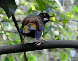 灰翅噪鹛中型鸟类,体长21~25厘米。额黑色,头顶黑或灰色,眼先、脸白色。上体橄榄褐至棕褐色,…