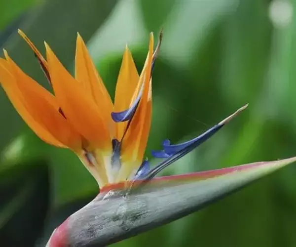 鹤望兰,别名天堂鸟,为鹤望兰科鹤望兰属的一种多年生草本植物;无木质树干;花序生于与叶柄近等长或稍短的花序梗上,佛焰苞1;花较小,萼片橙黄色,长7.5-10厘米,箭头状花瓣基部具耳状裂片,暗蓝色;花期在冬季。该物种原产非洲南部,在中国南方大城市的公园、花圃有栽培,北方则为温室栽培。性喜温暖湿润、阳光充足的气候,适宜生长的温度为25℃左右,耐干旱、较耐寒、不耐水湿,要求疏松肥沃、排水良好,以土层深厚的沙壤土为宜。因花形美丽似鹤,花开时犹如仙鹤翘首远望,花朵寿命亦长,故中文名为鹤望兰。鹤望兰素有“鲜切花之王”的美誉,是一种名贵的观赏花卉,深受广大消费者喜爱。同时,鹤望兰也宜大盆栽植,布置在公园、客厅、会议室、展厅候机室等处。鹤望兰是美国洛杉矶市的官方花卉象征。