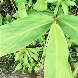 多年生草本,无茎。叶片长圆状披针形,长25-45厘米,宽约10厘米,顶端急尖,基部圆形或楔形,下部边缘波状;叶柄细长。