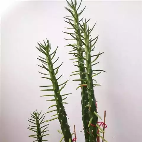 霸王鞭,是大戟科大戟属的多年生肉质灌木,全株含白色乳汁;茎直立,茎基部圆柱形,上部4~5纵棱,…