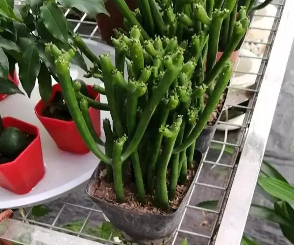 整株树无花无叶,仅剩光秃秃的枝丫,犹如一根根棍棒插在树上。故人们戏称为“光棍树”,也有人叫它“绿玉树”、“神仙棒”。光棍树的茎中含有乳白色的汁液,故又有人叫它“牛奶树”,它茎干中的白色乳汁可以制取石油。 喜温暖干燥和阳光充足的环境,耐干旱和半阴,不耐寒,忌阴湿,无明显休眠期 。