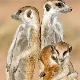 狐獴(学名:Suricata suricatta),头尾长42-60厘米,是一种小型的哺乳动物。体形粗笨。四肢短,后足仅具4趾,趾间有蹼;尾长而圆,约为体长的2/3,上被小鳞片及稀疏的毛。背部毛色黑褐,杂以黄色毛尖,绒毛为深咖啡色;尾两色,上面棕黑色,尾基部和下部为淡黄色。