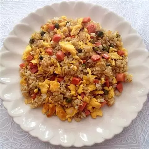 菠萝炒饭是将带皮菠萝纵切,用勺子将菠萝肉取出,切成小丁,…